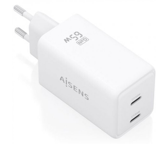 AISENS - CARGADOR GaN 65W, 2xUSB-C PD3.0 QC4.0, BLANCO