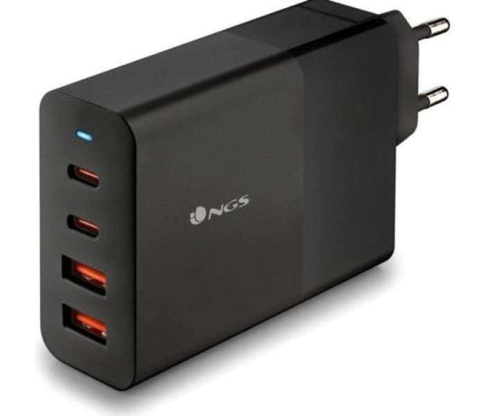 Cargador de pared con 2 salidas USB-C (PD & PPS) y 2 salidas USB-A QC 3.0 de 100W de potencia máxima para cargar dispositivos de manera rápida y eficiente.. Fabricado en GaN y materiales ignífugos es el cargador ideal para smarphones, tablets y ordenadores portátiles.. Es un cargador inteligente que permitirá una carga más eficiente de la batería del dispositivo alargando la vida del mismo.. Su diseño con 4 puertos permite cargar 4 dispositivos simultáneamente de forma segura y estable minimizando el tiempo de espera. . Compatible con todos los móviles y dispositivos de carga USB.. Diseño compacto y portátil.. Potencia de entrada: 100-240V, 50/60Hz, 3A. Salida:. . USB-C 1/2: PD 3.0. 5V-3A, 9V-3A, 12V-3A, 15V-3A, 20V-5A (100W Max.). PPS: 3.6-21V / 4.7A. USB-A 1/2: QC 3.0. 5V-3A, 9V-3A, 12V-2.5A, 20V-1.5A (30W Max.). C1+C2: PD60W+PD20W. C1/2+A1/2: PD60W+QC30W. C1+C2+A1/2: PD60W+PD20W+QC18W. C1/2+A1+A2: PD60W+7.5W+7.5W. A1+A2: 7.5W+7.5W. C1+C2+A1+A2: PD60W+PD20W+7.5W+7.5W6