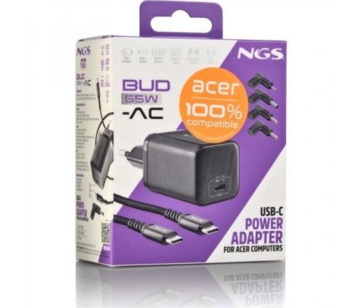 - NGS BUD 65W-AC es el cargador ideal para quienes necesitan potencia, seguridad y versatilidad en un formato reducido y fácil de transportar.