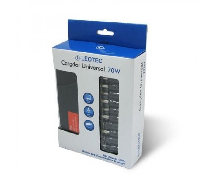 CARGADOR PARA PORTATIL AUTOMATICO UNIVERSAL LEOTEC 70W NEGRO