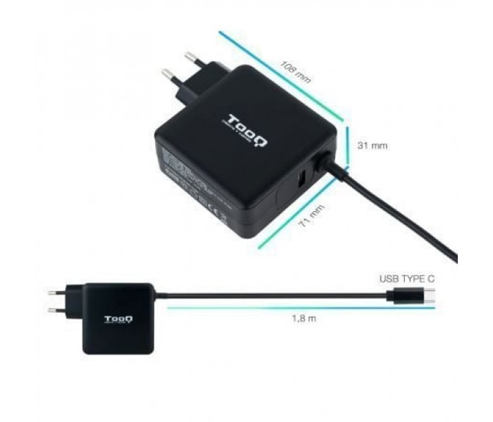 CARGADOR PORTATIL USB-C TOOQ PD3.0 65W NEGRO