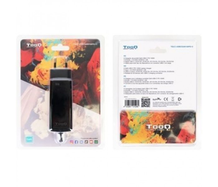 Fabricado con la tecnología Gan (Nitruro de Galio), que permite un suministro de corriente más eficiente disminuyendo las altas temperaturas que soportan los dispositivos.. Entrada: . 110-240V 50/60Hz 1.8A max.. Salidas:. USB-C: DC5V/3A, DC9V/3A, DC12V/3A, DC15V/3A y DC20V/5A. Potencia:. 100W. Válido para todo tipo de dispositivos con conector USB-C de carga. Compatible con MAC. Cable de 1.8 metros. Certificación: . CE, FCC y RoHS. Color:. Negro