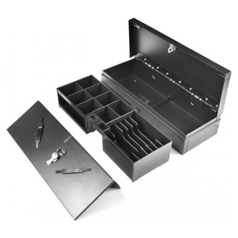 Marca iggual Modelo IGG319536 (IRON-TINY) Características - Caja de efectivo para monedas y billetes - Asa superior - Cerradura frontal de dos posiciones (abierto o cerrado) - Apertura manual con llave (incluye juego de 2 llaves) - Compartimentos: 3 billetes y 8 monedas - Bandeja extraíble con separadores para 8 ta..