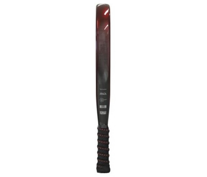 Está construida con carbono 18K Textreme en las caras, un material de alta rigidez que potencia los golpes ofensivos sin perder precisión. El marco de carbono 3K aporta consistencia y durabilidad, mientras que el núcleo de goma EVA garantiza un buen tacto y amortiguación. El acabado brillante le confiere una estética profesional, y el sistema Dual Pro Grip junto al cordón reemplazable mejora la ergonomía y reduce las vibraciones.