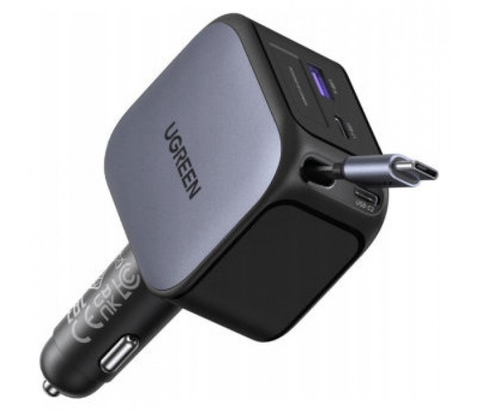 UGREEN 145W 3C1A FAST CAR CHARGER WITH RETRACTABLE USB-C CABLE