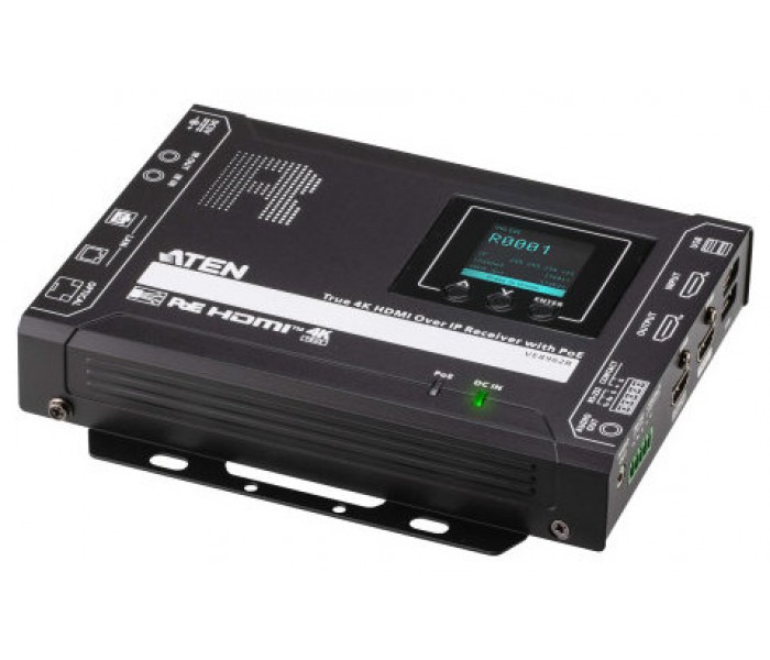 ATEN PREMIUM MODEL (CONSULTAR) TRUE 4K HDMI OVER IP RECEIVER WITH POE, USB PERIPHERAL SUPPORT AND IR / RS-232 / ETHERNET (WEBGUI) CONTROL AND DAISY-CHAINABLE (VE8962R-AT-G)