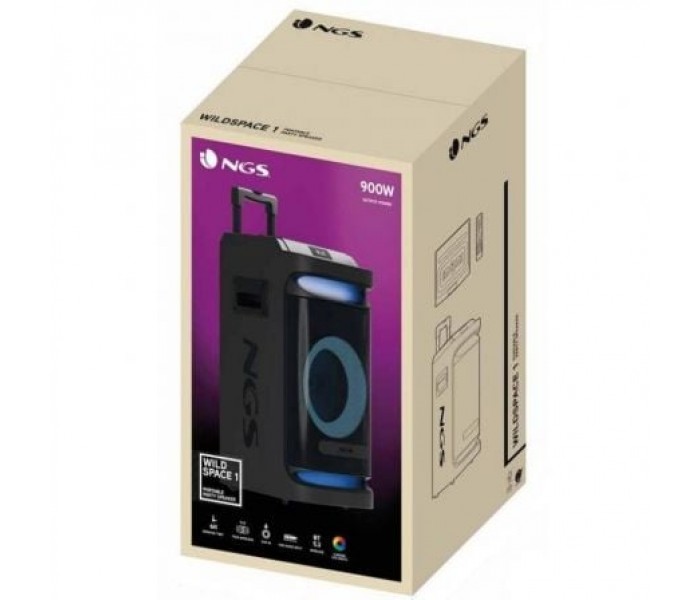 Altavoz inalámbrico compatible con tecnología Bluetooth 5.3 para disfrutar de la música tanto en el interior como en el exterior.. Tamaño compacto y portátil (incluye ruedas y trolley), proporciona sonido de alta calidad gracias a su gran potencia de salida, 180W RMS.. Diseño robusto con materiales muy resistentes (caja de madera).. 900W de potencia de pico, 1x10" woofer. . Luces LED RGB para lograr un ambiente de fiesta. . Amplifica el sonido, permite emparejar dos dispositivos de forma simultánea y aumentar la potencia de sonido gracias a su Tecnología True Wireless.. Compatible con la Tecnología Bluetooth: Conecta tu dispositivo vía Bluetooth y reproduce tu música con la mejor calidad de sonido.. Dispone de puerto de entrada USB para conectarle una memoria de hasta 32GB.. Incluye entrada AUX In para Jack 3,5mm. Doble entrada de micrófono para convertir tus fiestas en un auténtico karaoke.. Batería recargable de Litio de 16V/3600mAh que puede reproducir música hasta 6 horas (al 70% de volumen).. Controla tu música desde el altavoz con los sencillos botones integrados o desde el mando a distancia.. El alcance del móvil para la reproducción de música es de hasta 10m.. Función Xdrive para aumentar el sonido de los bajos a un nuevo y asombroso nivel.