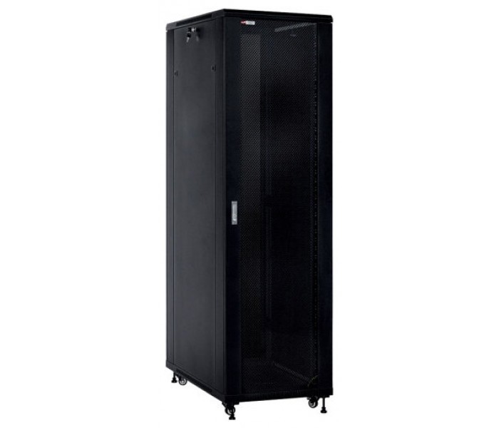 La puerta delantera y trasera de acero perforada, el armazón de acero de 2 mm, los cierres (también en los paneles laterales desmontables), las 4 ruedas y las 4 patas de nivelación convierten esta serie en una solución sencilla y con todo lo necesario para su instalación.