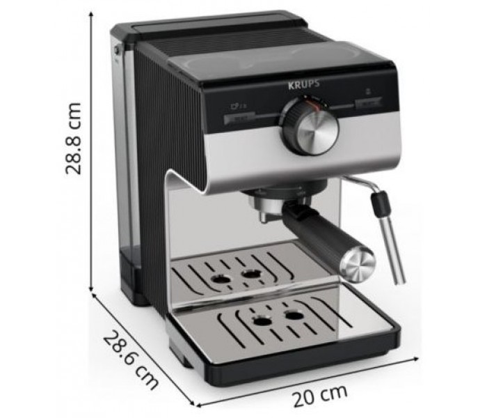 Disfruta de una cafetera espresso renovada hasta el último detalle, con grandes patas de goma para mayor estabilidad y espacio de almacenamiento inteligente para los filtros.
